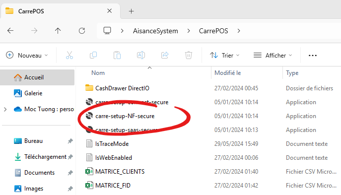 Copier le dossier PRIVATE à la racine du disque C:\ de la caisse du nouveau client