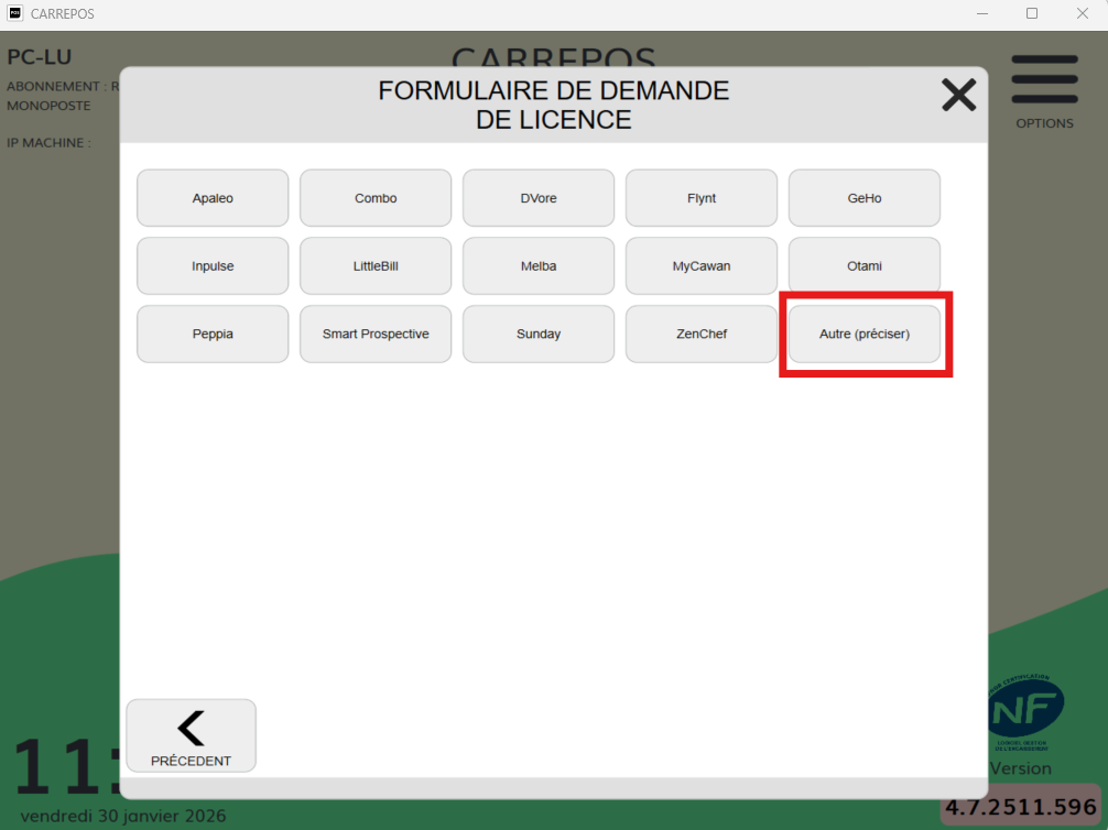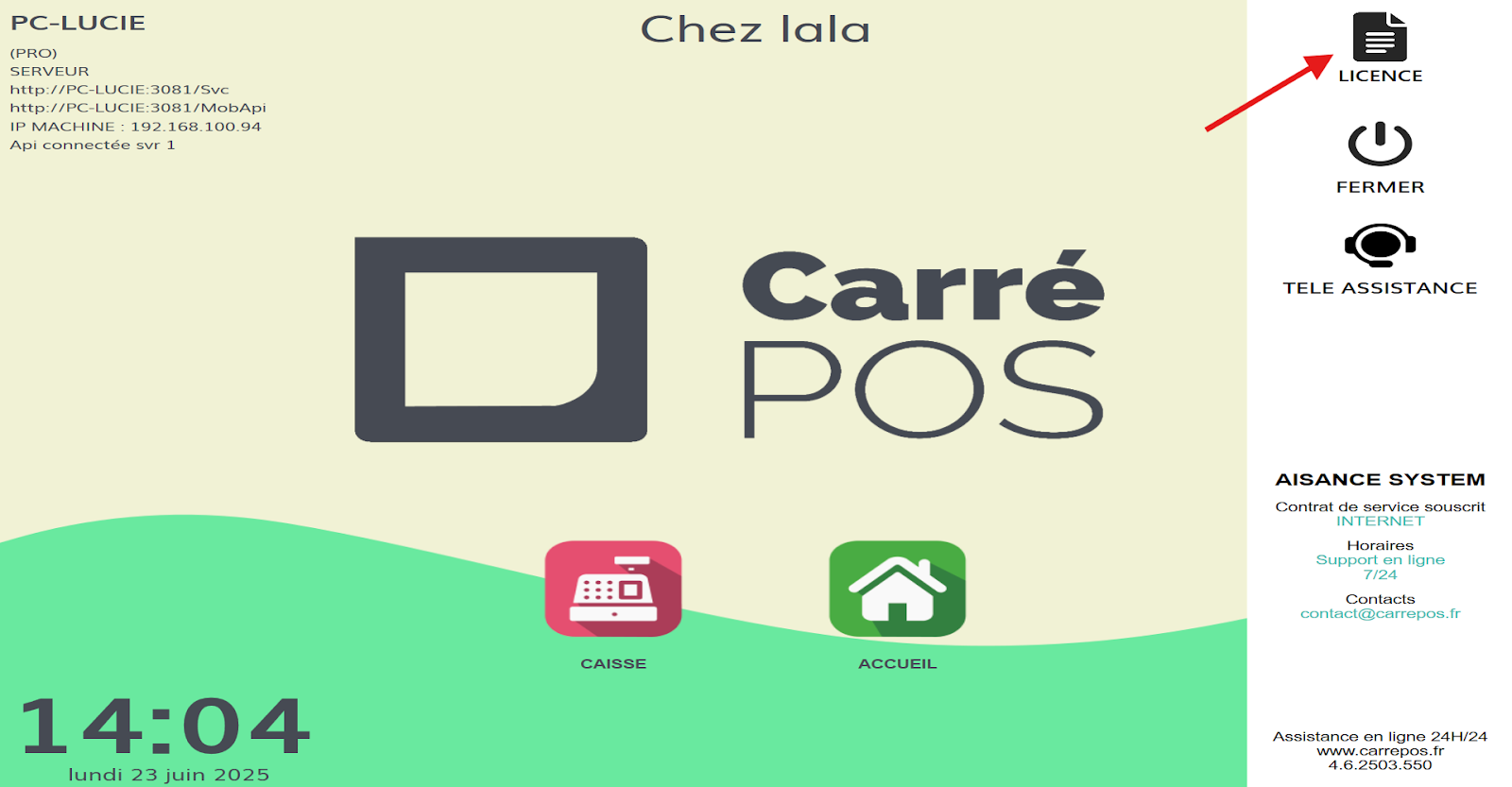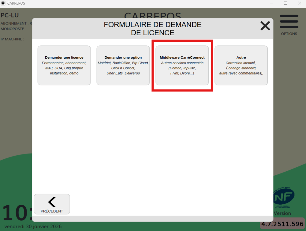 - Demande l’intégration CHIFT via le gestionnaire de licence depuis la caisse
