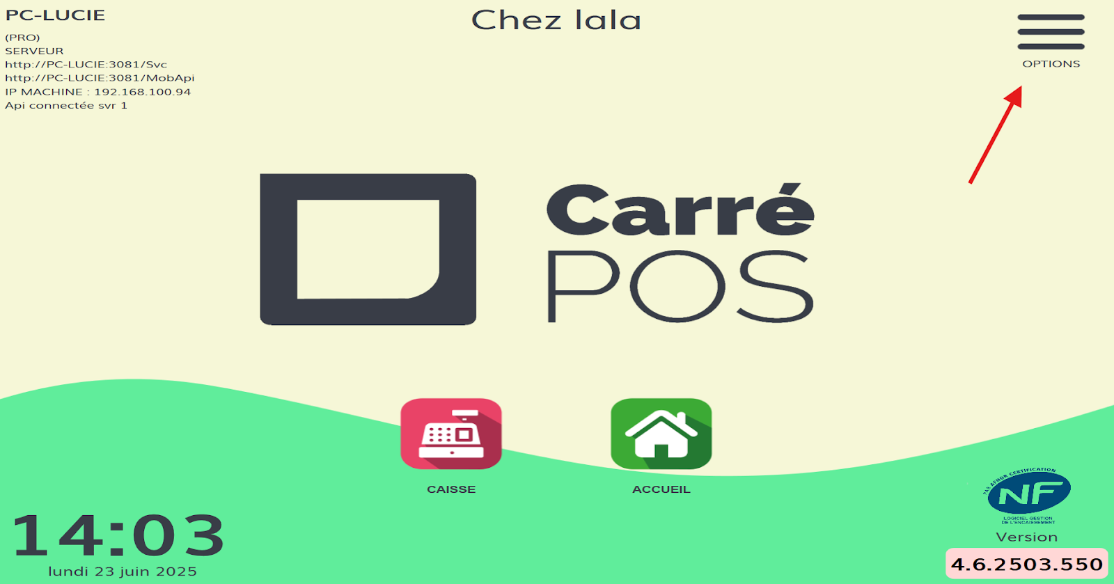 Ouvrez l’application CarréPOS et cliquez sur OPTIONS en haut à droite